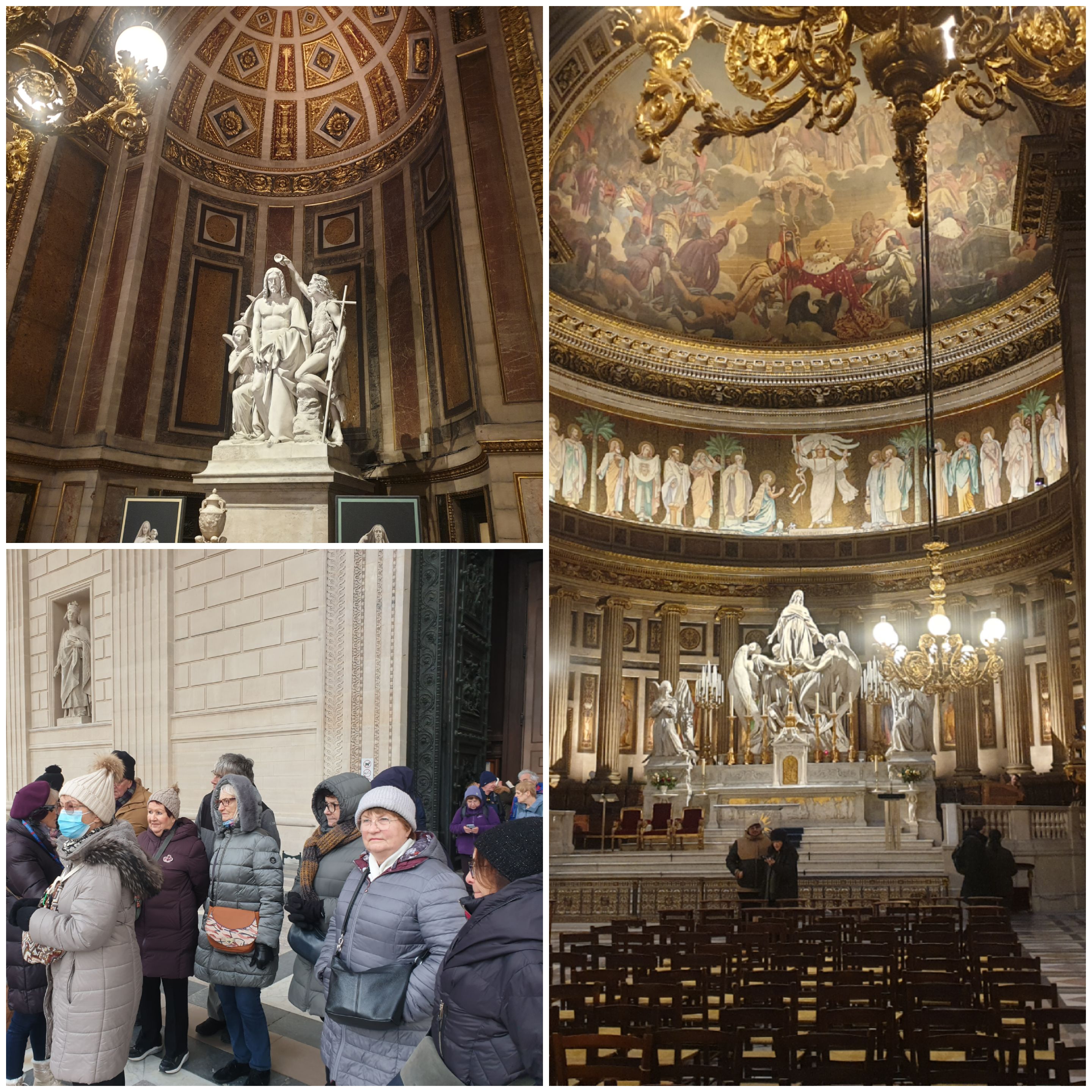 Le 10 janvier, malgré le froid, 14 adhérents ont visité la Madeleine, rénovée en 2023, avec la guide Francine Gaillard, accompagnés en musique par l'organiste qui répétait pour un concert. Il aura fallu 85 ans pour bâtir cet édifice, commencé sous Louis XV et inauguré par Louis-Philippe, qui ressemble davantage à un temple grec qu’à une église et qui a failli devenir une gare ! Son architecture impressionnante intimide les Parisiens et ils sont peu nombreux à avoir osé franchir les portes monumentales.
